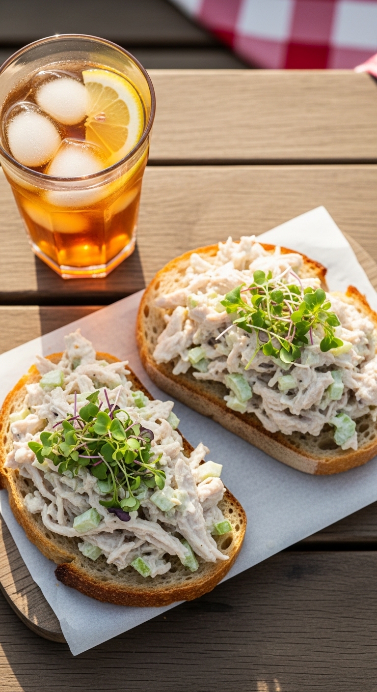 Cut sandwiches in halves and serve with crisp pickles or chips. Garnish with extra chives and lemon zest. Store filling and bread separately up to 2 days to keep bread from sogging. Use croissants, wraps, or lettuce cups as variations. Great for summer lunches and office meals.