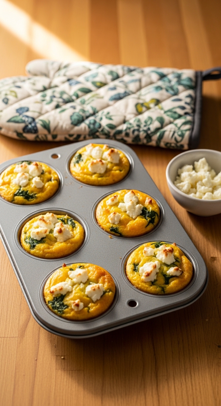 Serve two muffins with a side salad or whole-grain toast. Top with hot sauce or extra feta. Pack in a lunchbox for a quick breakfast at work. These freeze well for up to 2 months—thaw overnight in fridge and reheat. Great for busy weeks or brunch prep.