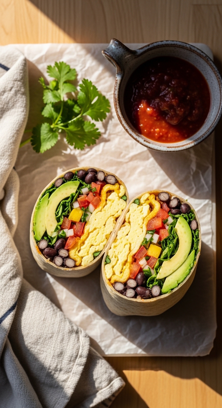 Serve with extra salsa and a wedge of lime. Wrap in foil for on-the-go breakfasts. Store assembled burritos in fridge up to 24 hours; reheat in oven or skillet. Freeze individual burritos for up to 2 months—thaw overnight before reheating.