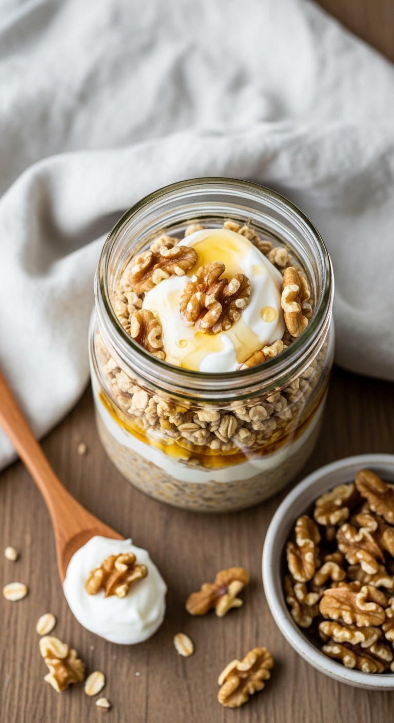 11. Greek Yogurt Overnight Oats with Honey & Walnuts — Make-Ahead Jar