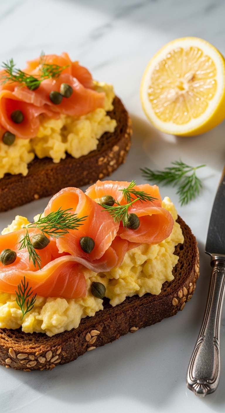 Plate on a wooden board and garnish with extra dill and lemon slices. Pair with a light green salad or sliced cucumber for freshness. Enjoy with a cup of cold brew or herbal tea. Assemble just before serving to keep bread crisp.