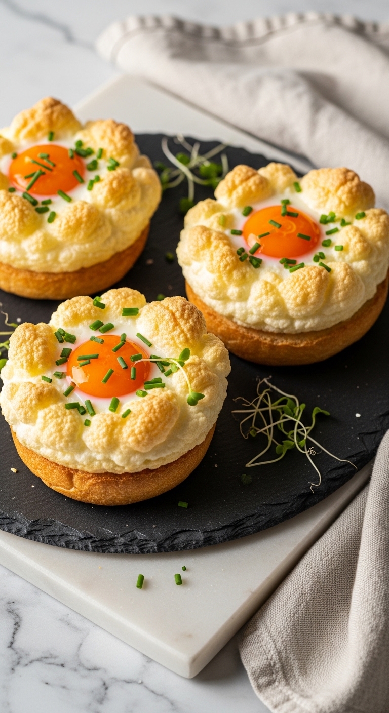 These cloud toasts are airy and elegant, with a tender whipped egg white base. The yolk sits creamy and runny in the center. Fresh herbs brighten the mild flavor. They make a light but filling keto breakfast. You’ll notice a fluffy texture and a delicate savory aroma.