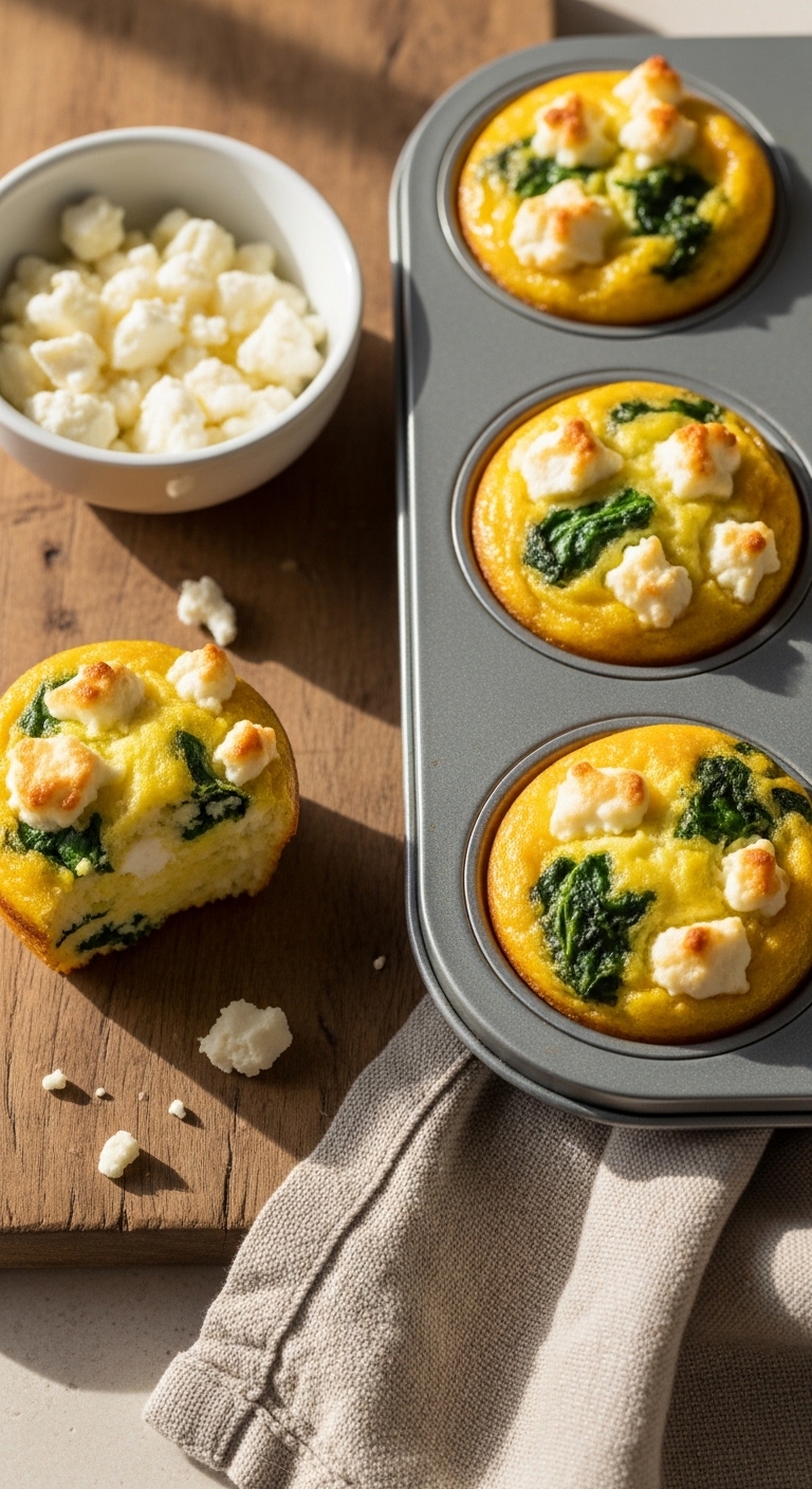 2. Savory Spinach & Feta Egg Muffins (Freezer-Friendly)