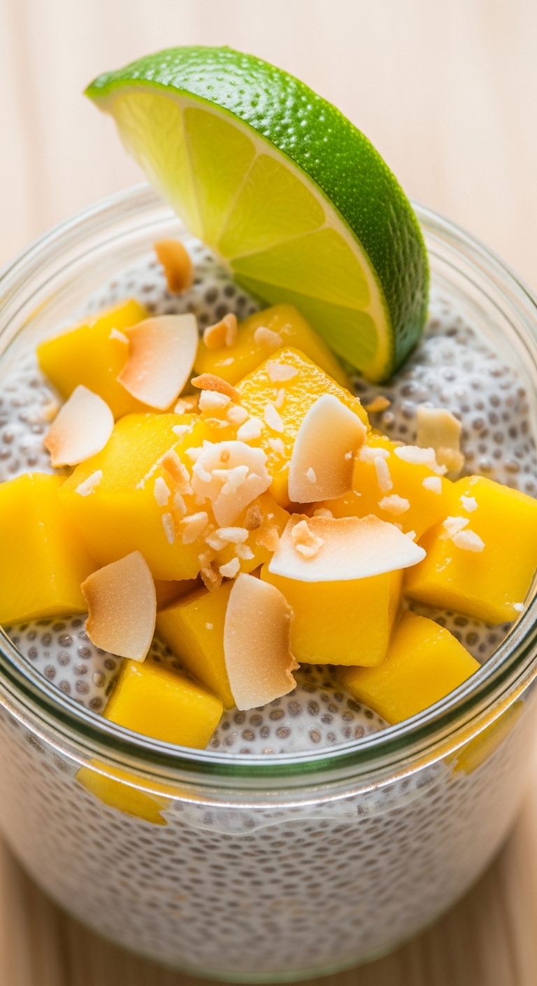 - Stir pudding; if too thick, add 1–2 tbsp coconut milk.