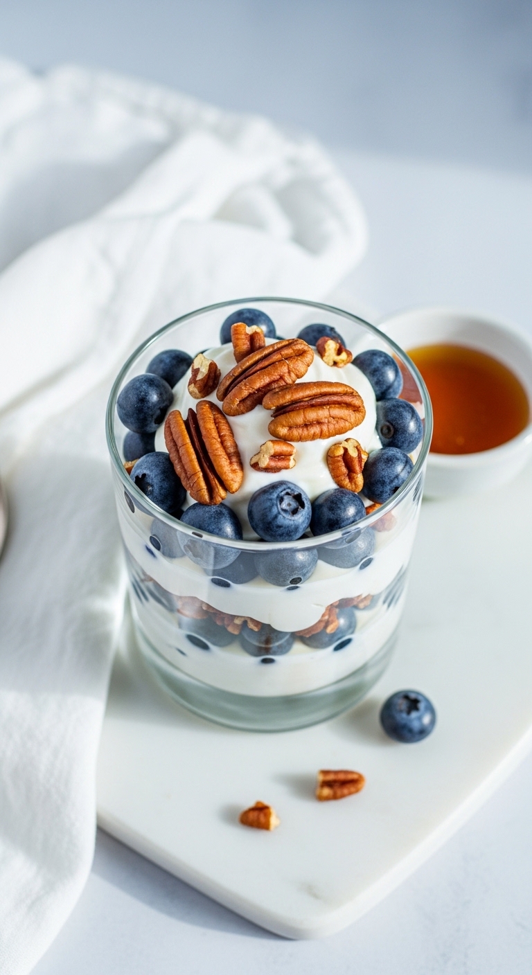 This parfait layers creamy coconut yogurt and juicy blueberries for bright flavor. Toasted pecans add crunch and healthy fat. It’s lightly sweet and tangy, without refined sugar. You’ll love how the textures play together. The aroma of toasted nuts is inviting.