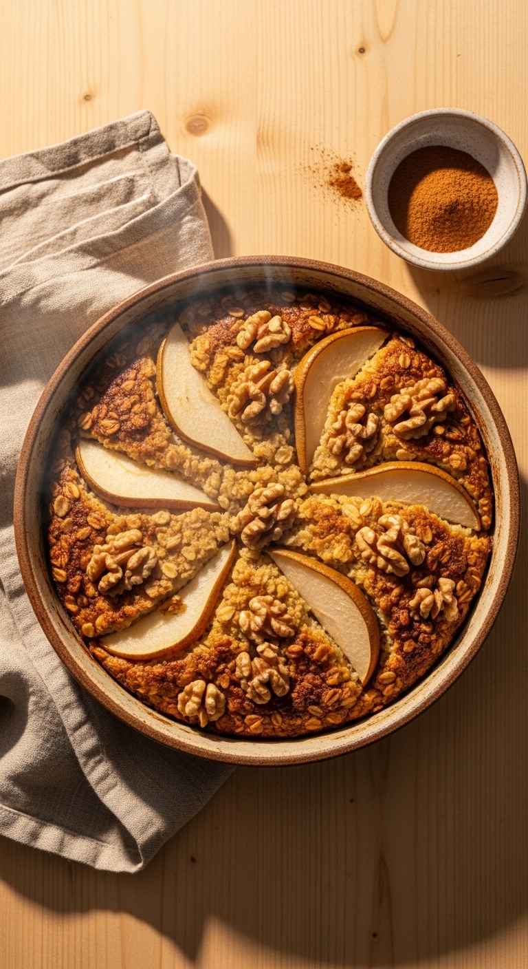 5. Healthy Breakfast Ideas Sweet Without the Sugar Crash: Baked Oats with Pear and Walnuts