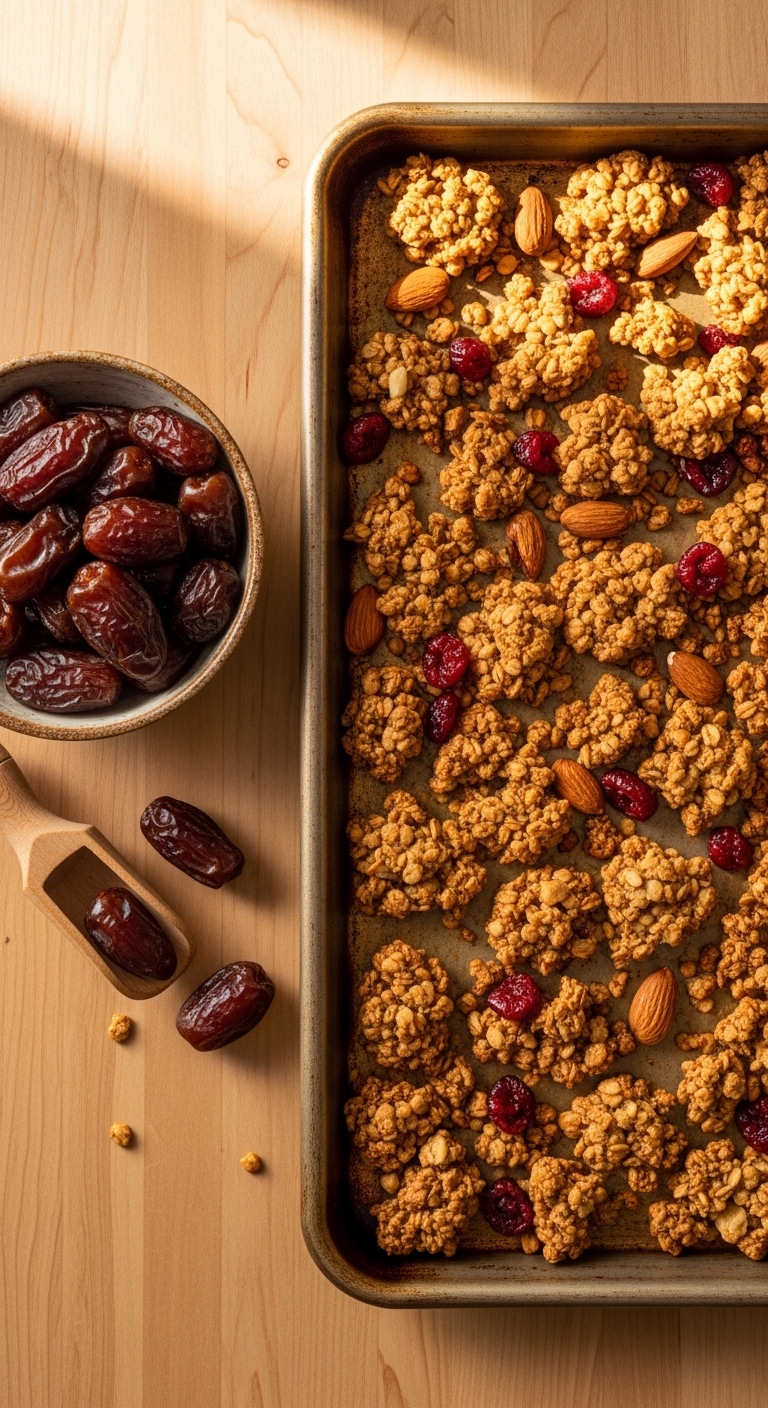 Serve with yogurt or milk, or eat by the handful. Add fresh fruit for extra juiciness. Granola keeps well for easy breakfasts. Make a double batch and gift jars to friends. Great for picnics or travel snacks.