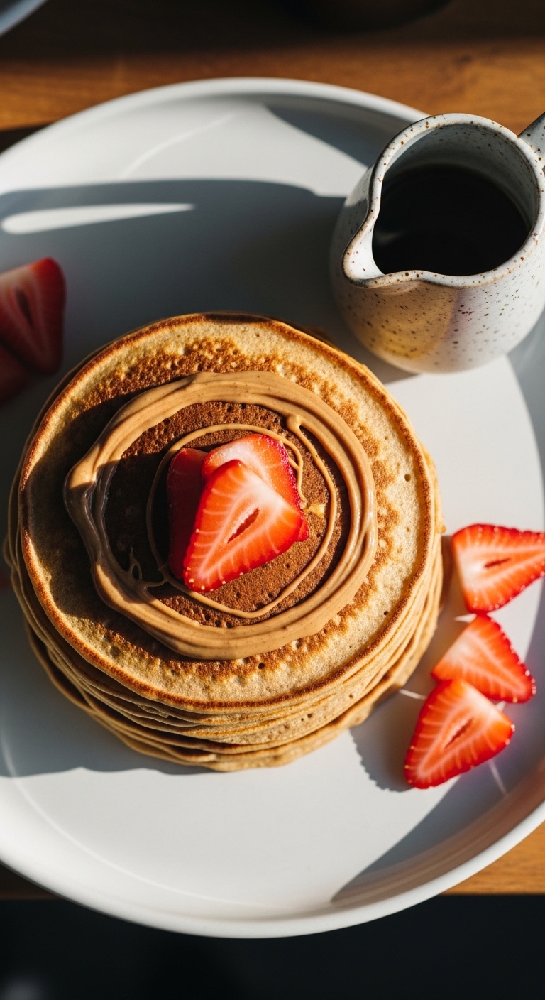- Serve stacked with strawberries and a drizzle of maple syrup if desired.