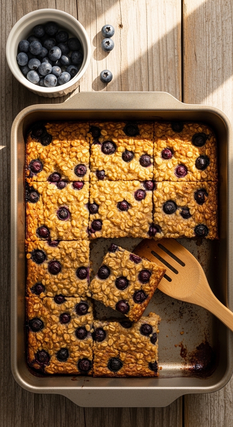 These baked oatmeal squares are soft, lightly sweet, and portable. They’re a wholesome breakfast bar alternative with fiber from oats and natural sweetness from blueberries. Cutting squares makes portion control simple for weight loss. They have a tender crumb and slightly crisp edges. If you like oatmeal but want something you can pack, these squares are ideal.