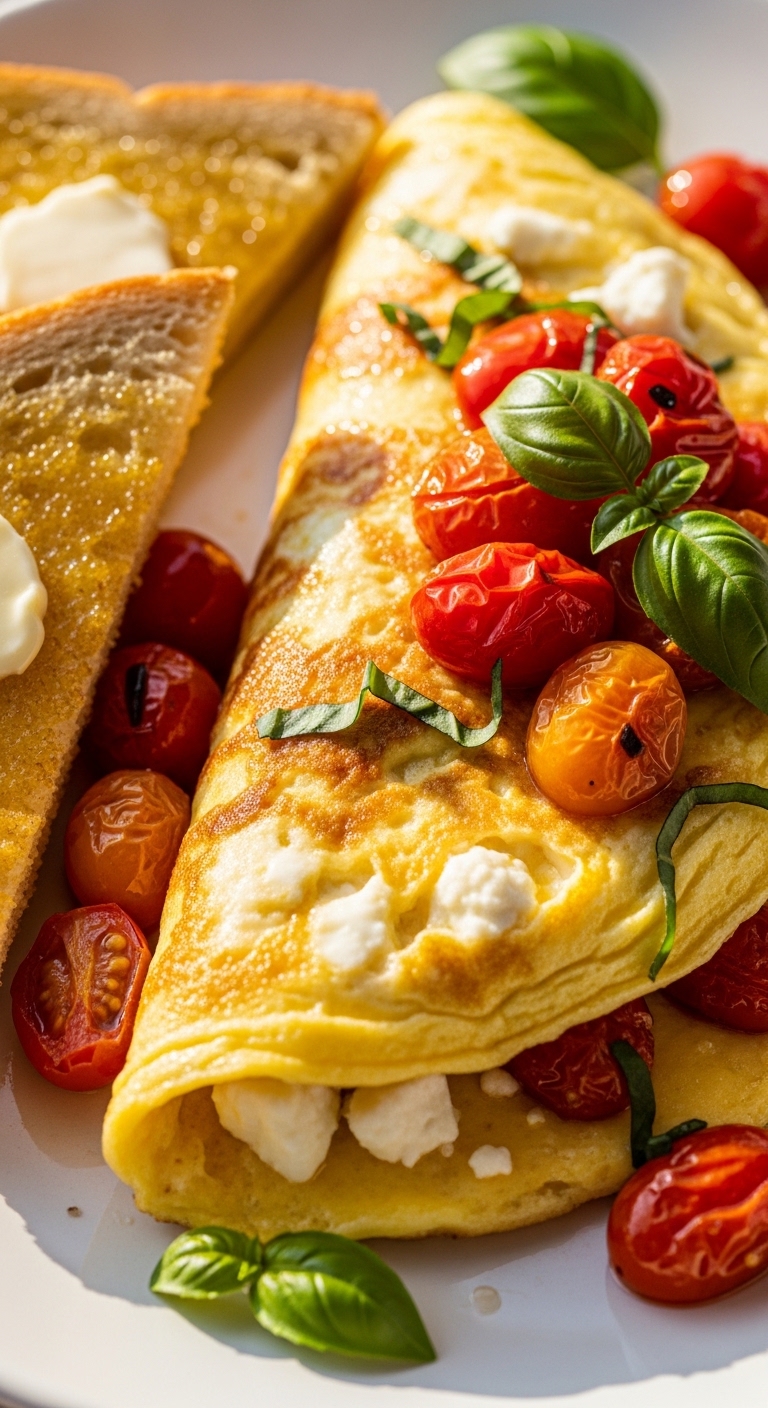 - Serve folded on a warm plate with a side of whole-grain toast.