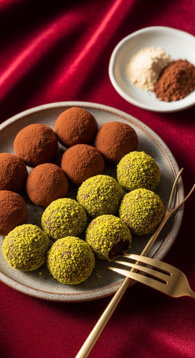 Serve truffles chilled with a small espresso or hot tea. Pack a few in a small box for gifts. Store in the fridge up to 2 weeks, or freeze up to 3 months. Let frozen truffles thaw 10 minutes before eating. Make ahead for parties or snack prep.