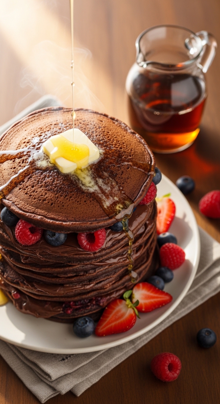 13. Double Chocolate Protein Pancake Stack (Dessert Breakfast)