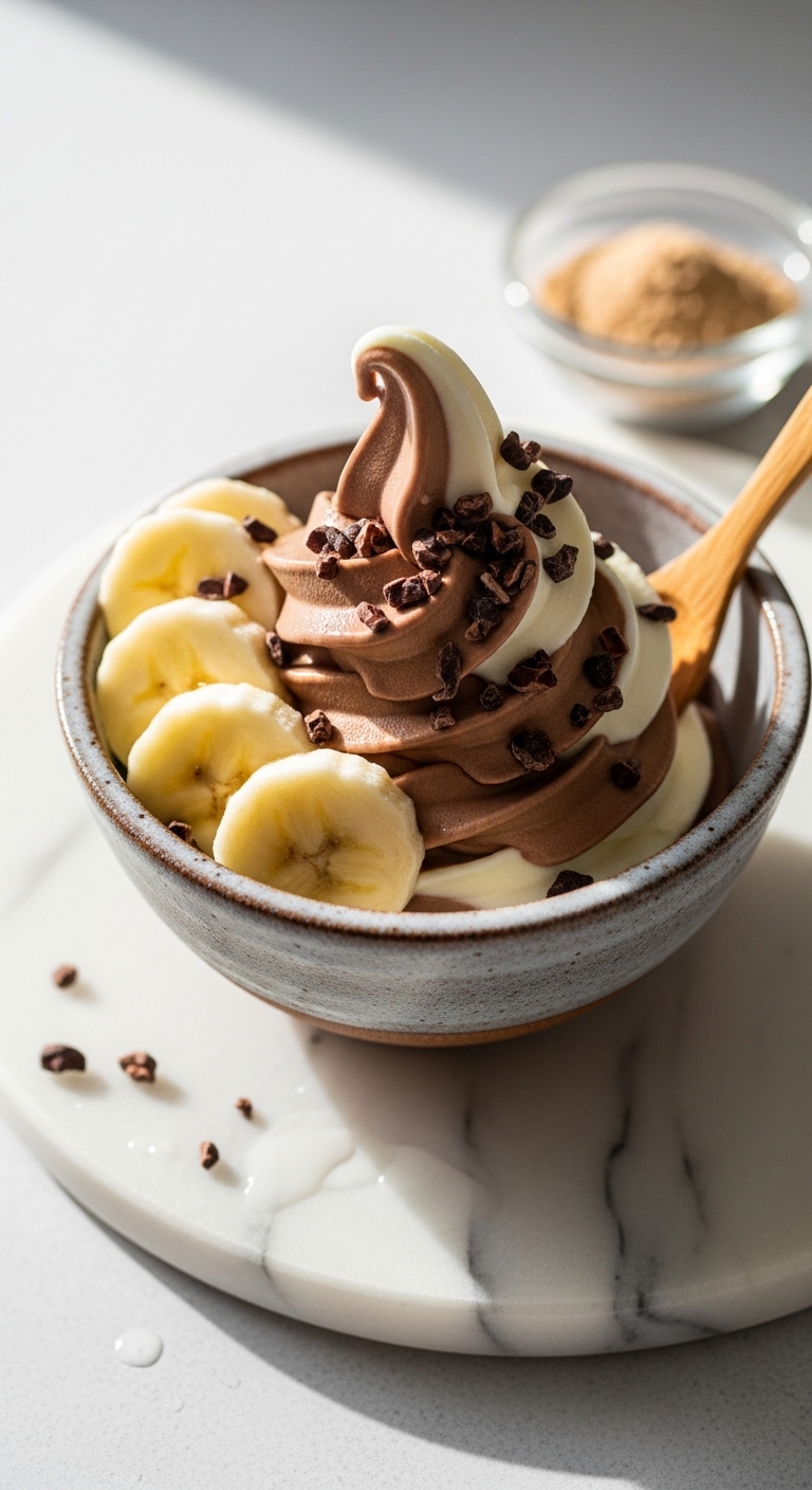 14. Chocolate Banana Protein Soft-Serve (Frozen, Low-Sugar Treat)