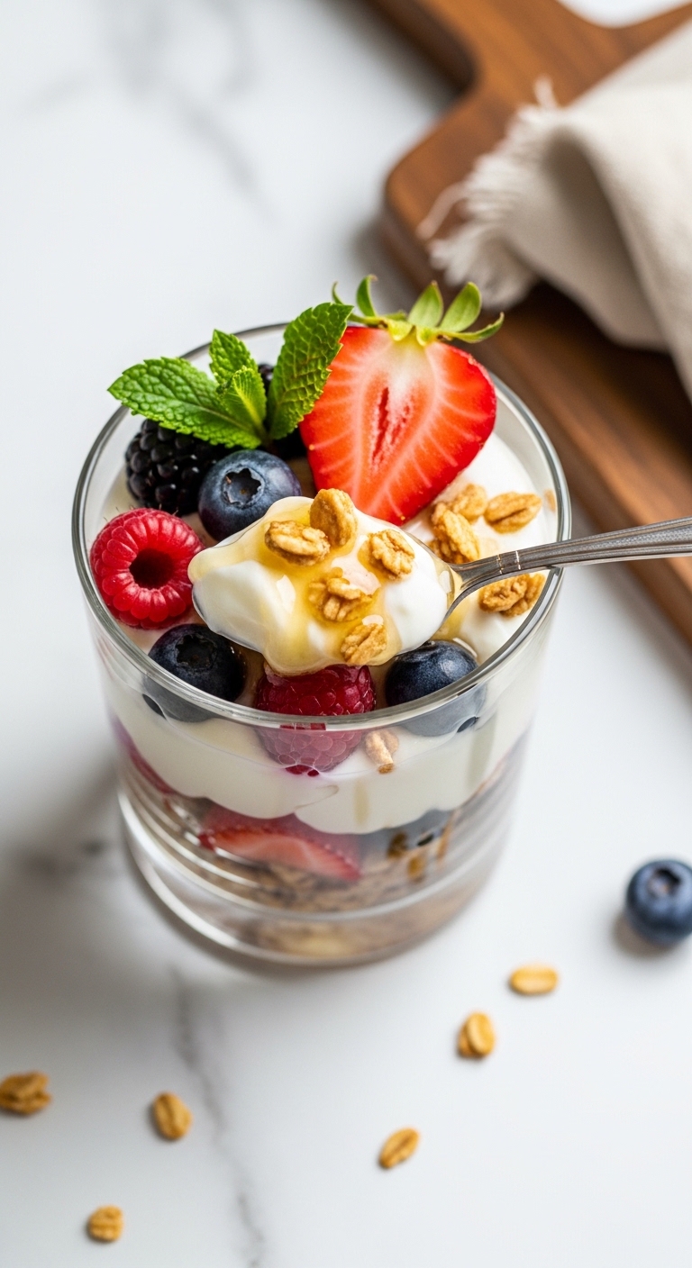 1. High Protein Desserts: Berry Greek Yogurt Parfait