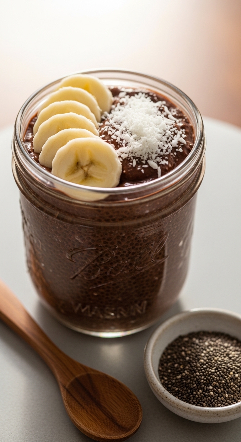 Serve chilled in small jars with a sprinkle of cacao nibs for crunch. Pairs well with espresso or a fruit salad. Store in fridge for 4–5 days. Make-ahead: prepare up to 3 days ahead. If too thick, stir in more milk to loosen.