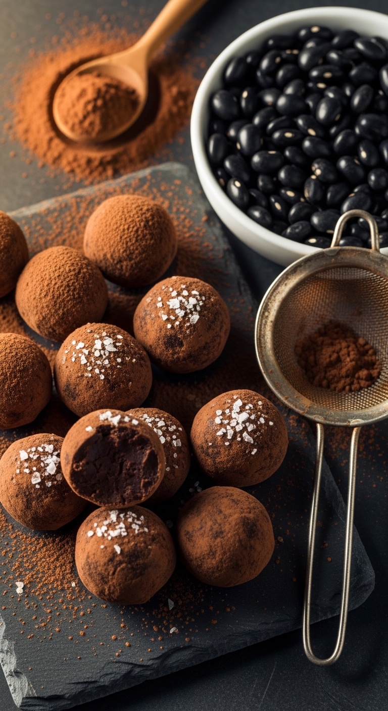 These truffles use black beans as a creamy, high-protein base with melted chocolate for richness. They’re rolled and chilled to form bite-sized treats. You’ll love the fudgy interior and cocoa dust finish. They’re perfect when you want dessert in a bite.