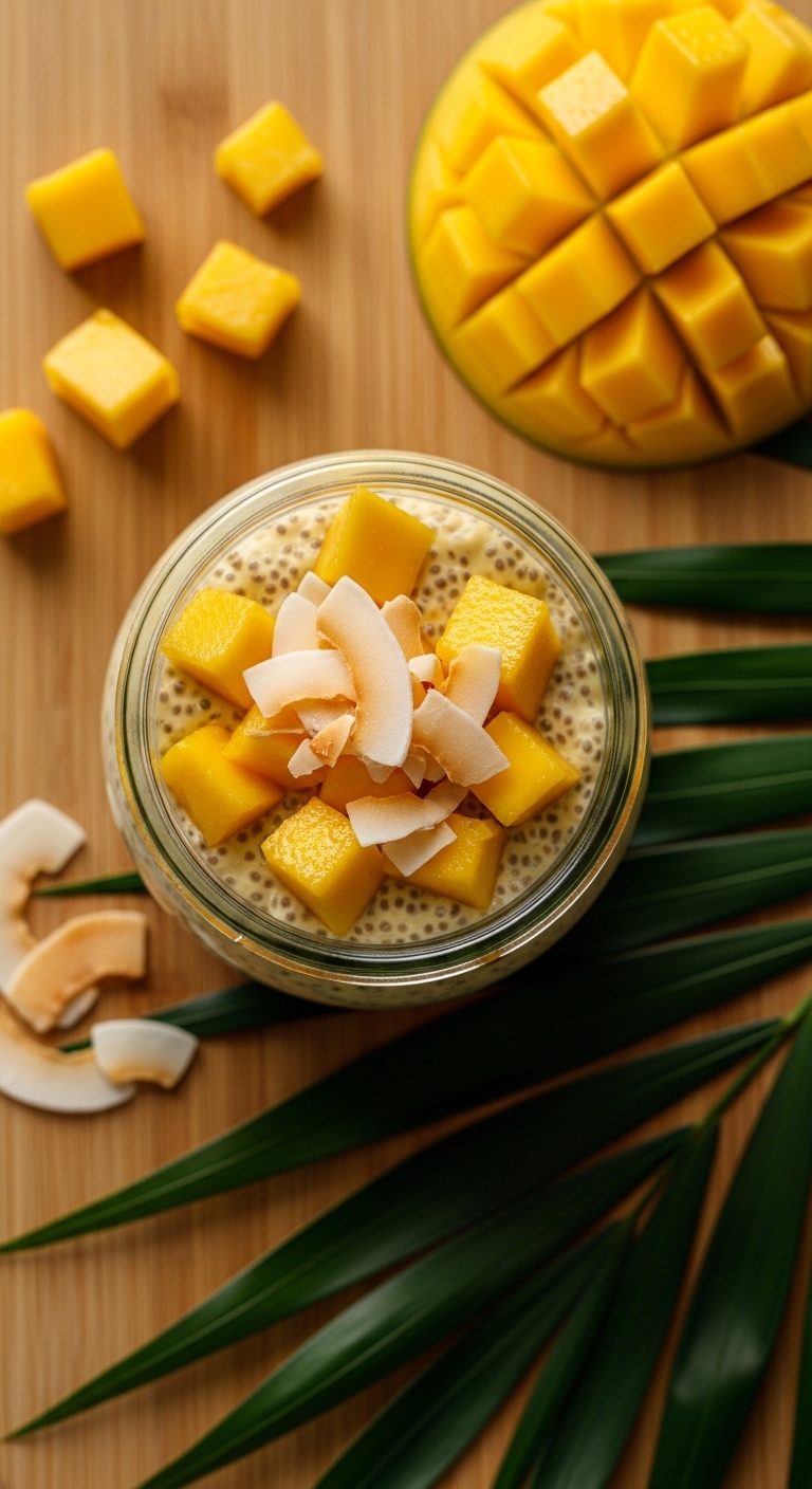 Serve chilled in glass jars for a pretty presentation. Garnish with extra mango cubes and mint. Pair with iced green tea or a citrus-infused water. Store in fridge 3–4 days. Make ahead by preparing 2–3 days in advance.