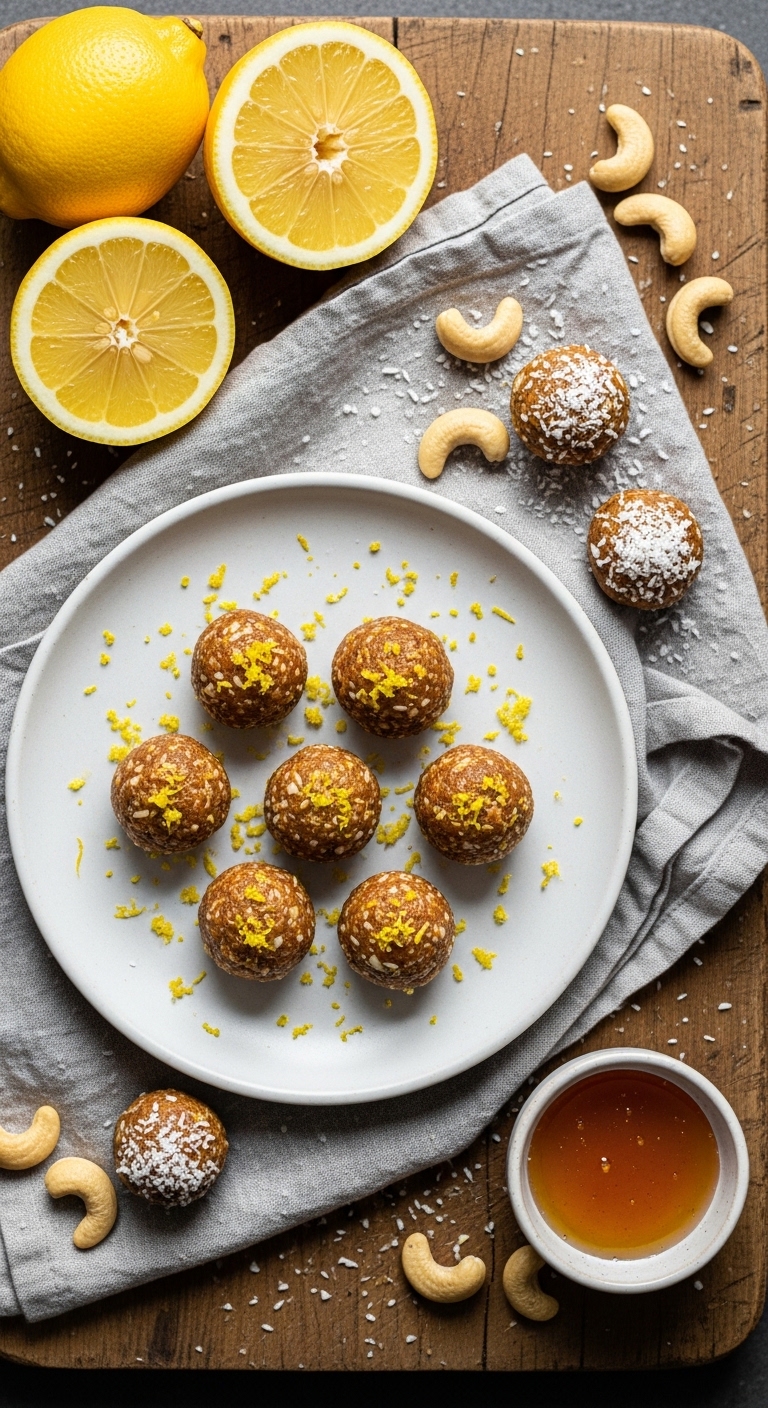 Arrange on a small platter with lemon slices and extra coconut for garnish. Pair with herbal tea or chilled sparkling water. These travel well for hiking snacks. Make a larger batch and freeze for up to 2 months; thaw in the fridge before serving.