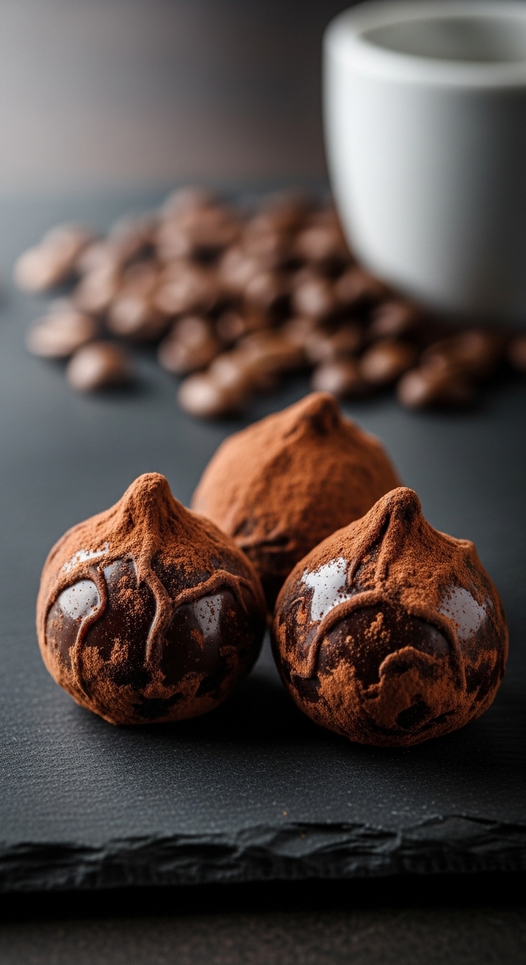 These truffles combine espresso and dark chocolate for a grown-up dessert. They’re dense, fudgy, and loaded with protein powder for a filling bite. Perfect for an afternoon pick-me-up or after-dinner treat. You’ll notice a bittersweet chocolate finish with a warm coffee aroma.