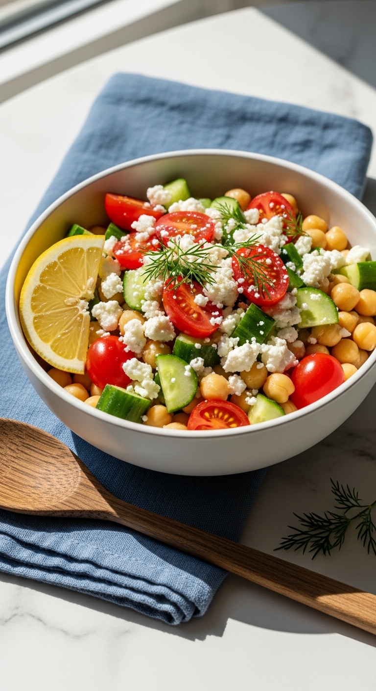 1. High Protein Lunch Ideas to Beat the 3pm Slump: Greek Chickpea Power Bowl
