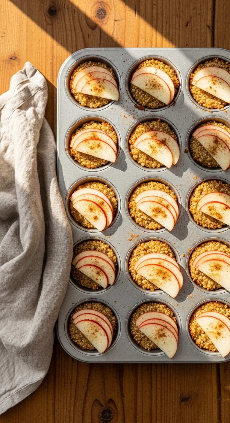 These quinoa apple cups are lightly sweet, chewy, and full of texture. Quinoa adds protein and a pleasant nutty bite. They make a portable breakfast or snack.