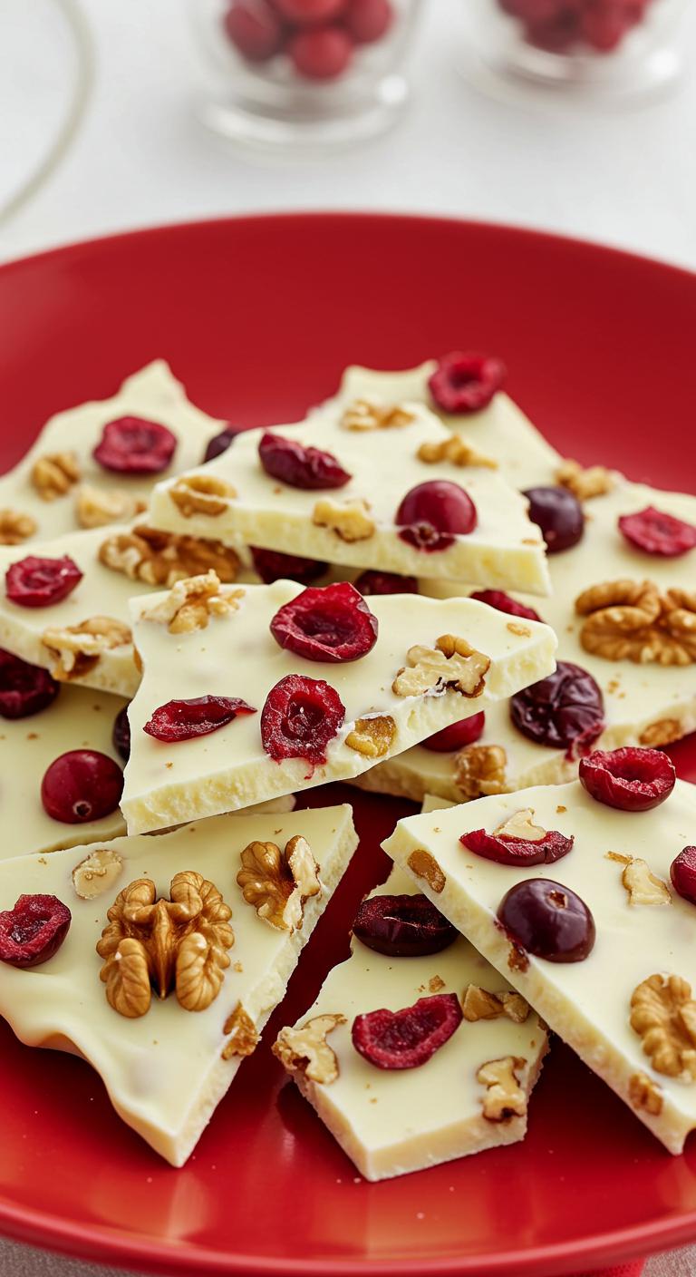 This bark combines creamy chocolate with tart cranberries for a festive delight.