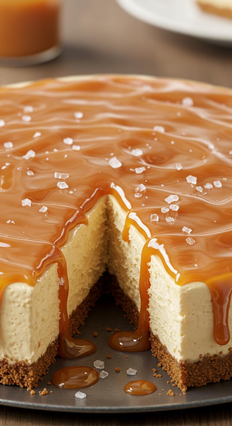 This cheesecake is a delightful combination of sweet and salty flavors.