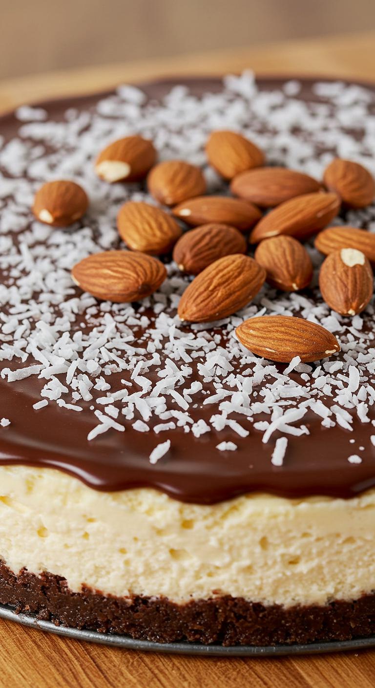 This cheesecake combines chocolate, almond, and coconut for a deliciously unique treat.