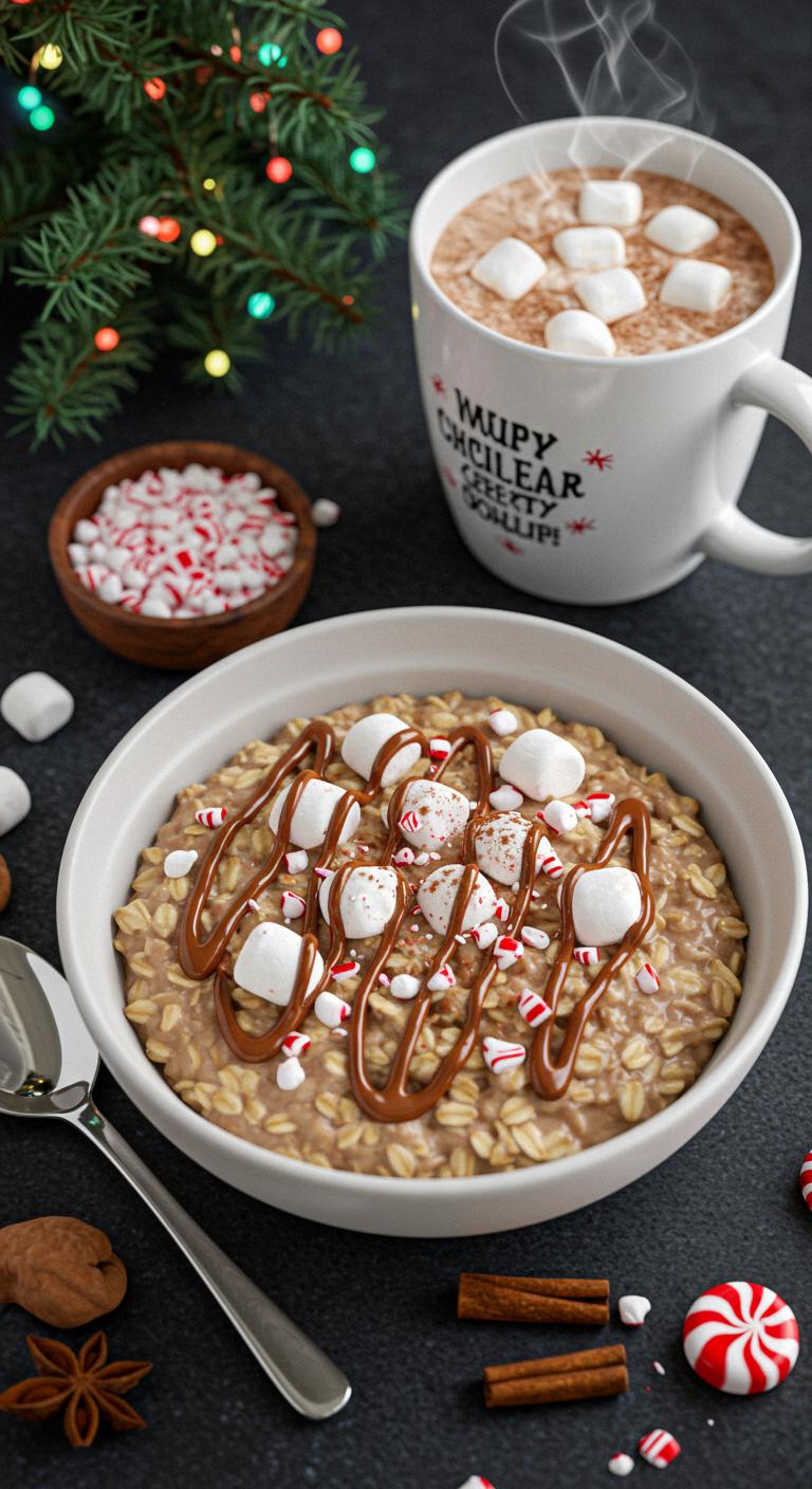Enjoy the cozy flavors of peppermint hot chocolate in this unique oatmeal.