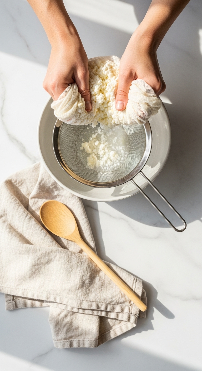 - For looser batter, add 1 tbsp milk; for firmer dough, drain more whey.