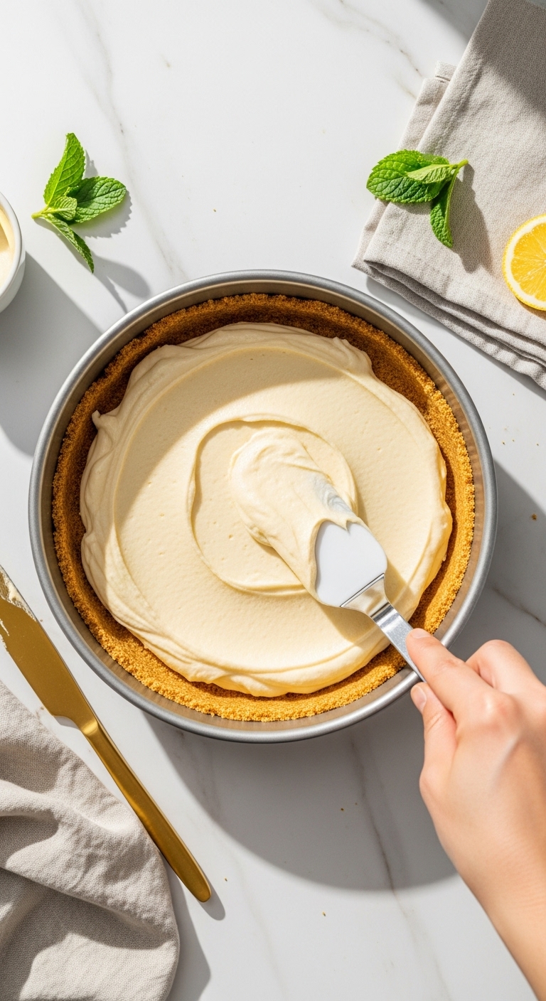 - Pour filling into the chilled crust. Tap pan gently to release air bubbles.