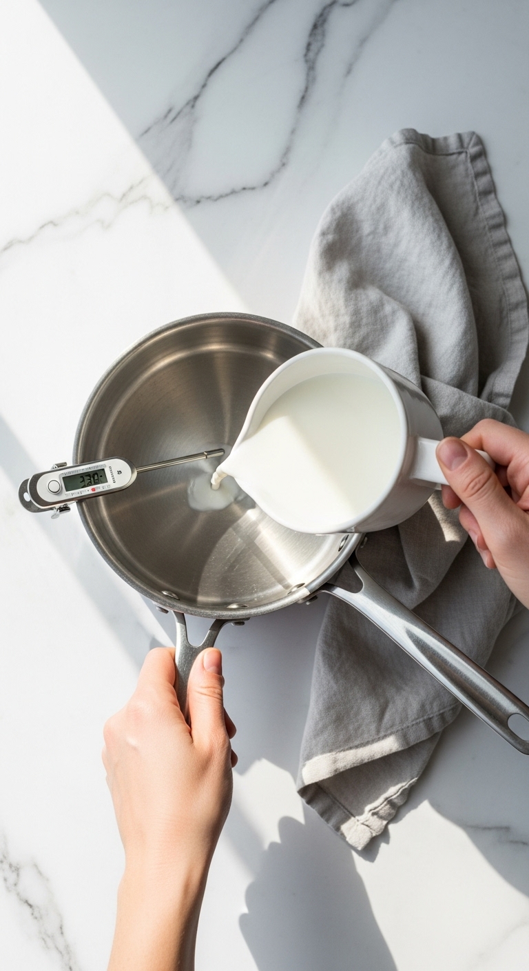 - Watch the thermometer: heat to 120–130°F (50–55°C). Don’t boil.