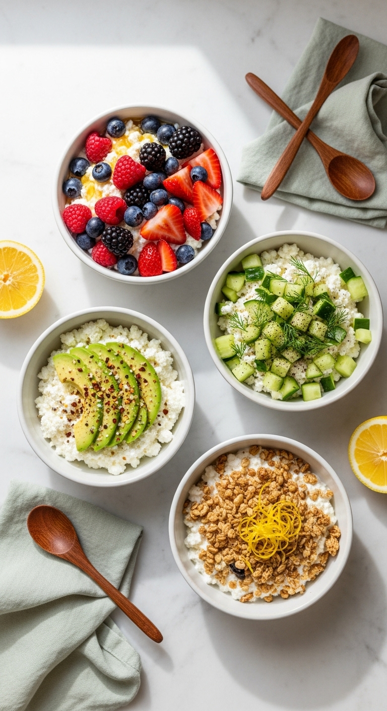 - Sweet & bright: 1/2 cup cottage cheese + mixed berries + 1 tsp honey + lemon zest.