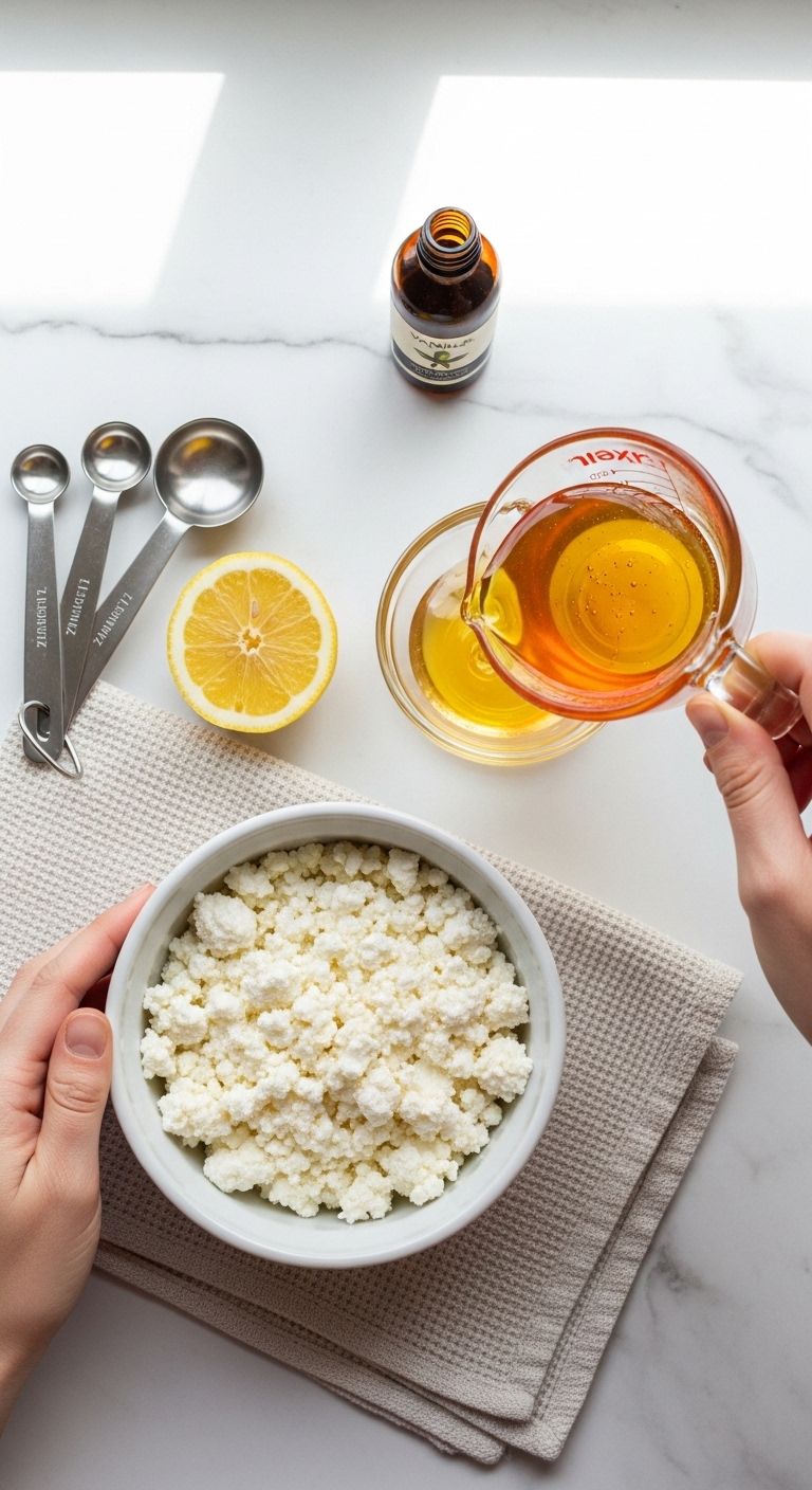 - Measure honey, vanilla, and lemon juice. Fresh lemon brightens the mousse without adding sugar.