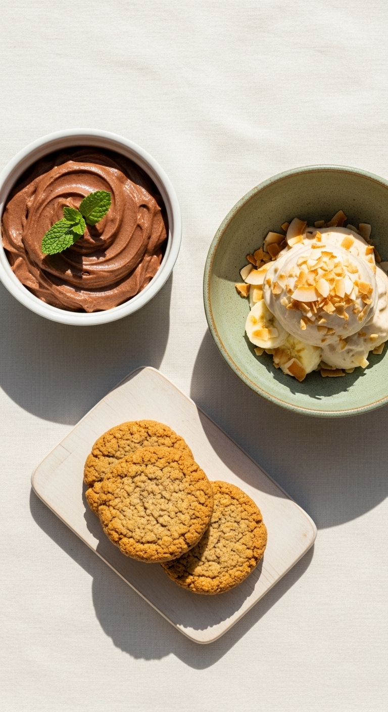 - Storage: Refrigerate mousse and oat cookies for 3–4 days. Freeze banana nice cream in an airtight container up to 1 month.