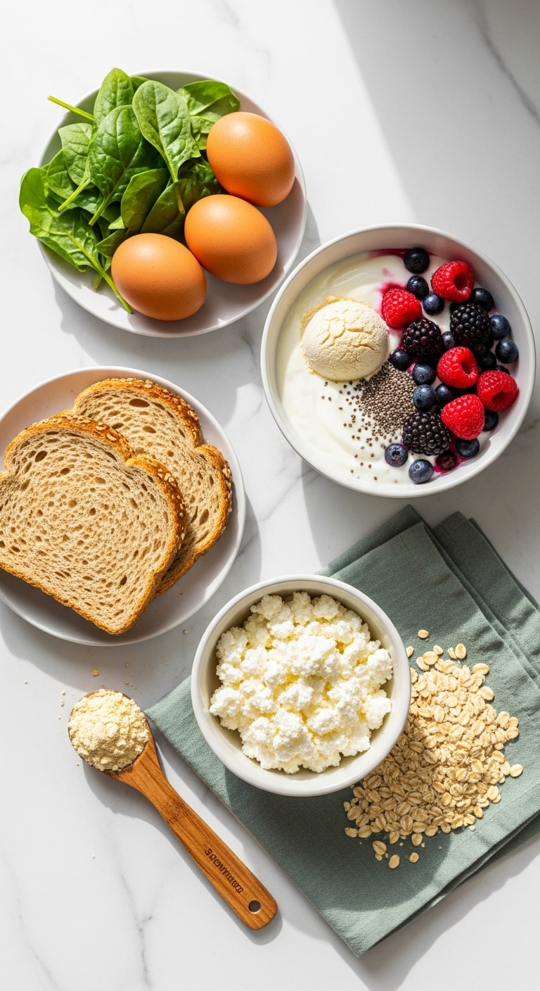 Core ingredients to buy for quick protein breakfasts: