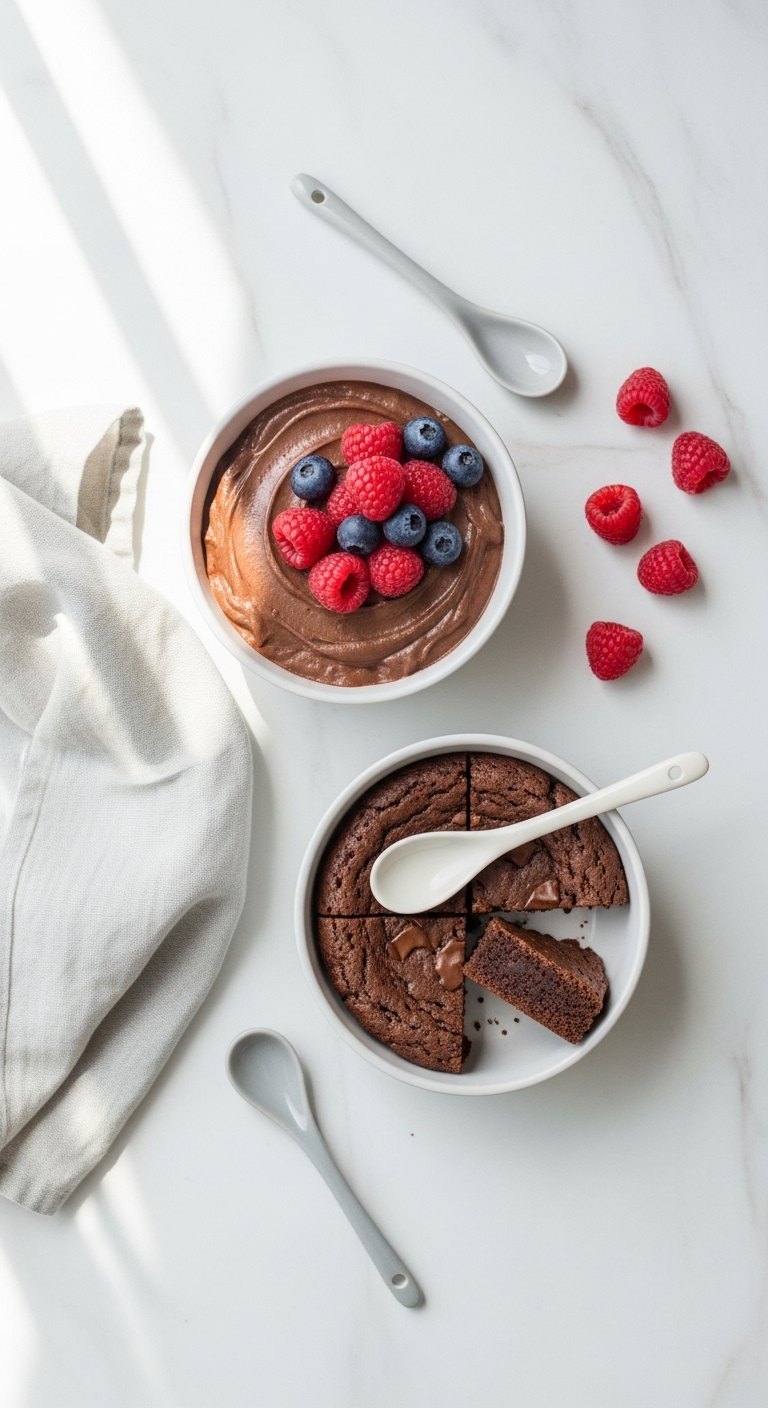 - For a mousse: blend 1 cup Greek yogurt, 1 scoop protein, 1 tbsp sweetener, chill 30 minutes.