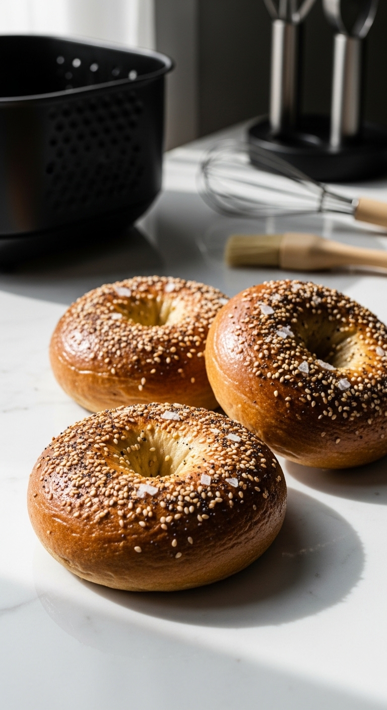 - Spritz bagels with a little oil before the last 2 minutes for extra crispness.