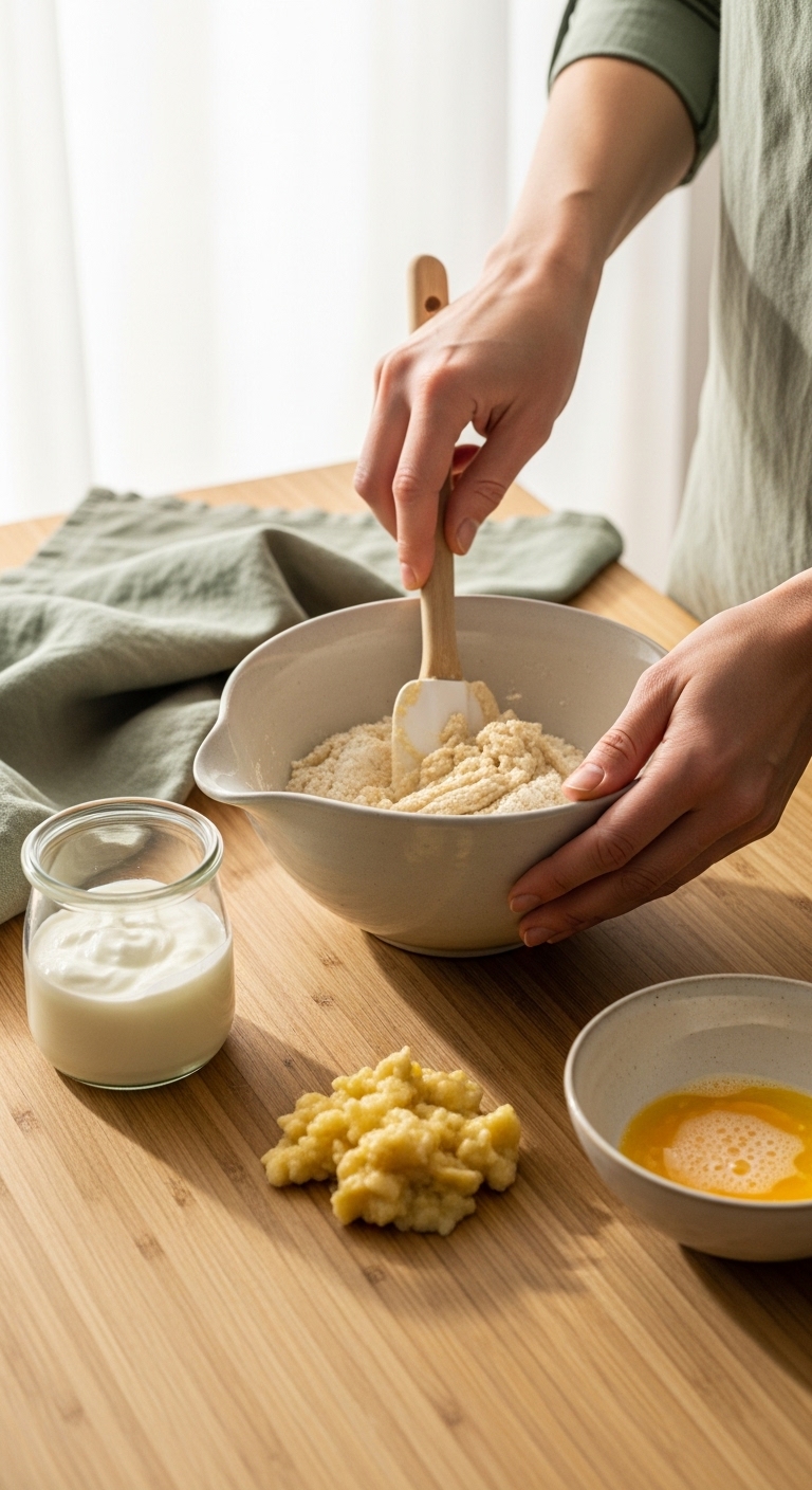 Tip: Let wet ingredients sit at room temperature for 10 minutes if using cold yogurt—this helps batter combine gently and reduces overmixing.