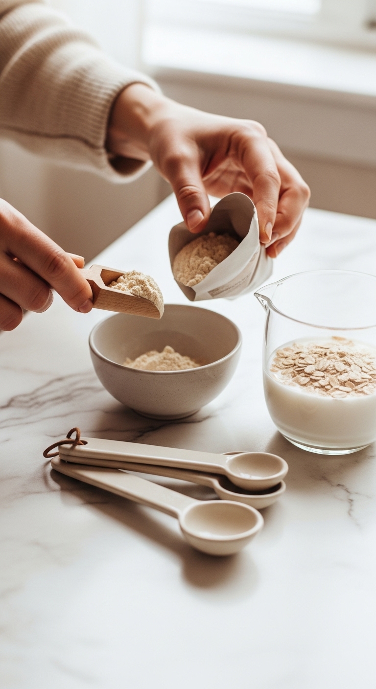 Prep makes the difference between gritty and creamy protein oatmeal. If you use flavored protein powder, cut back on added sweetener. For plant-based powders, add an extra splash of milk for creaminess.