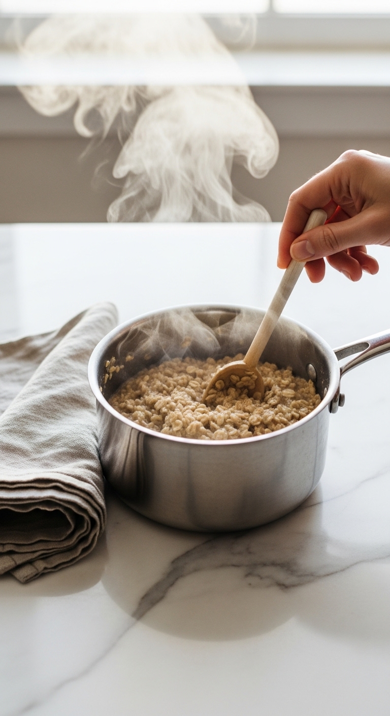 Timing: total cook time is about 7–10 minutes. If oats thicken too much, add 1–2 tbsp milk to loosen.