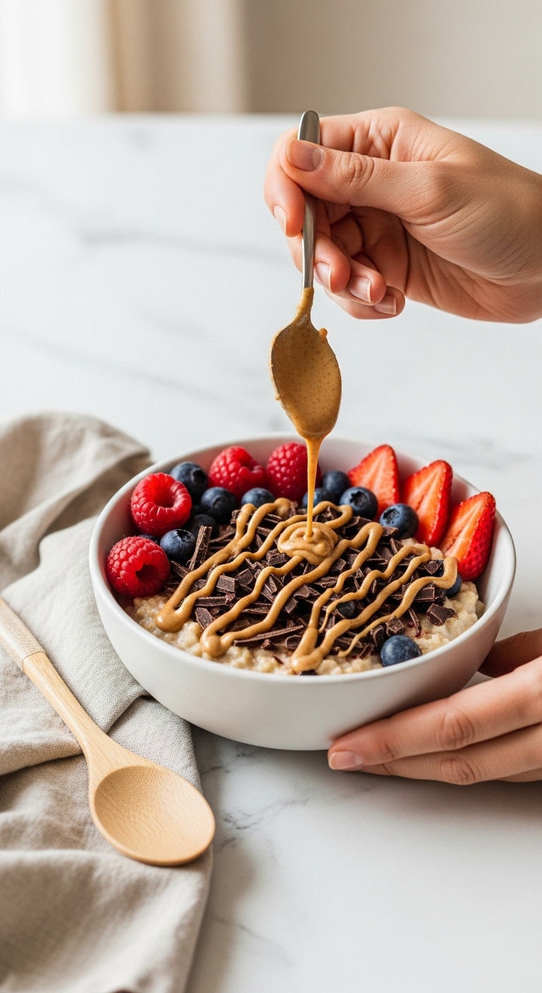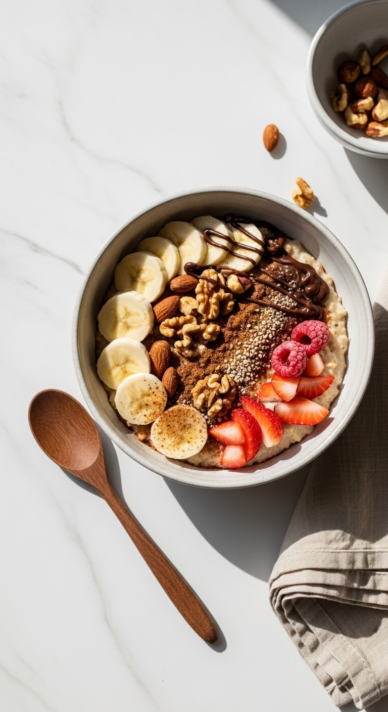 - Toppings: sliced banana, berries, chocolate shavings, nut butter