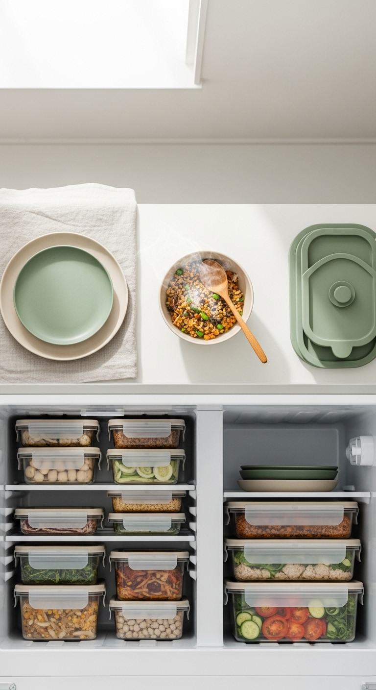 - Fridge: cooked grains, proteins, and roasted veggies for 3–5 days.