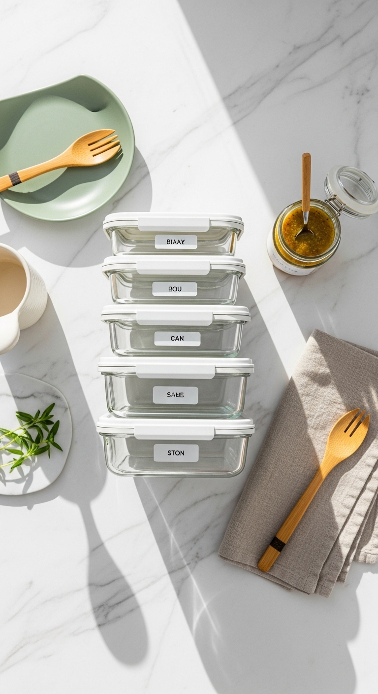 - Portion (10–15 minutes): Use your scale to pack protein, carb, and veggies into each container. Add sauces separately to prevent sogginess.