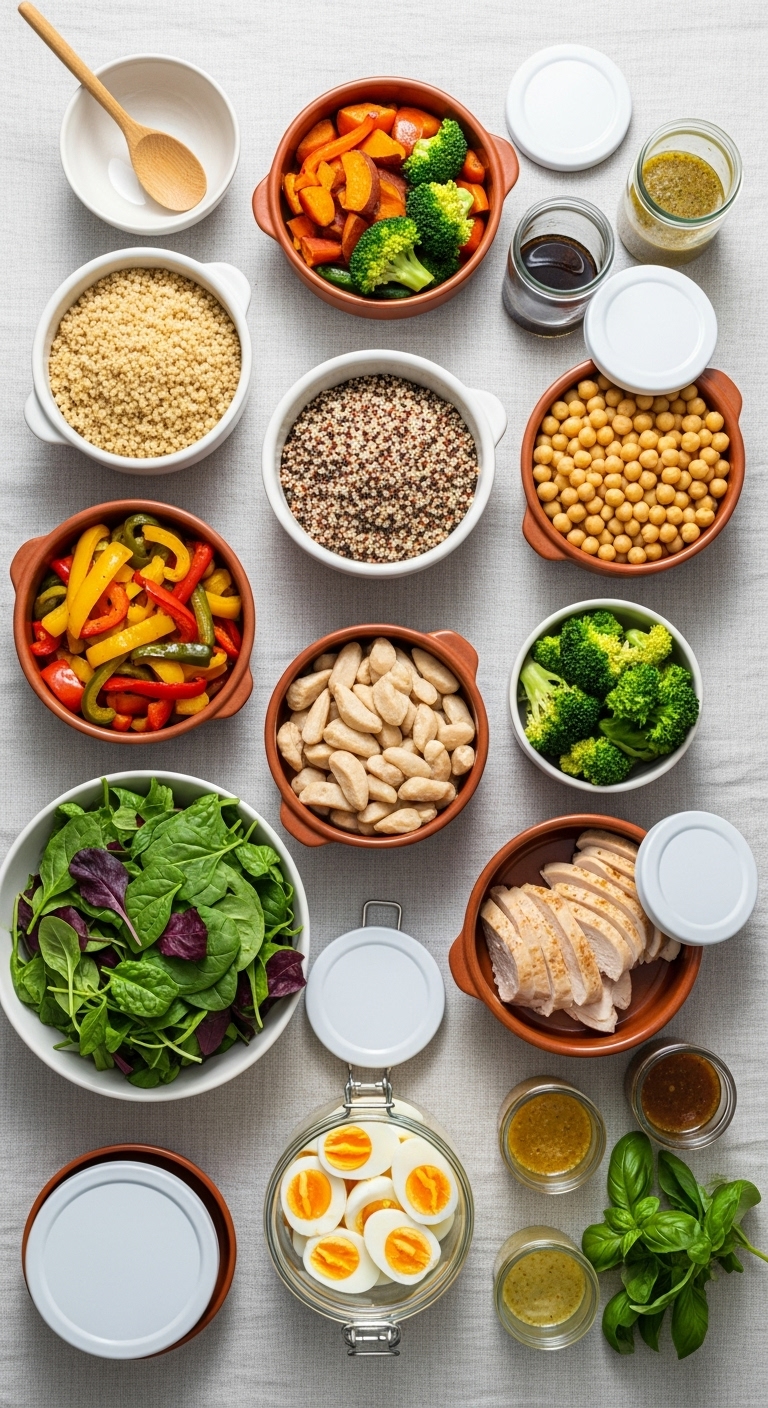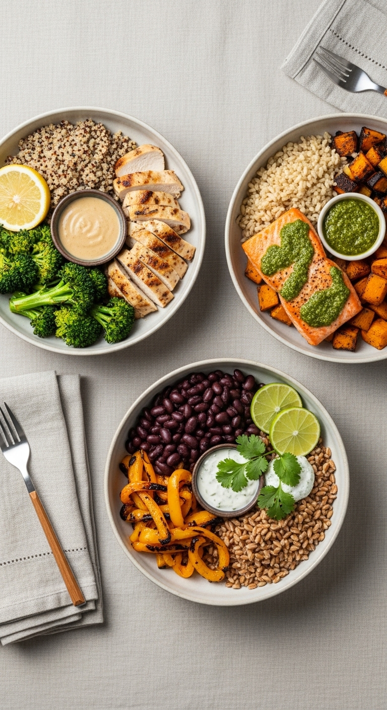 Tip: Cook grains and one protein on Sunday night. Roast a big tray of mixed vegetables for 30–40 minutes at 425°F.