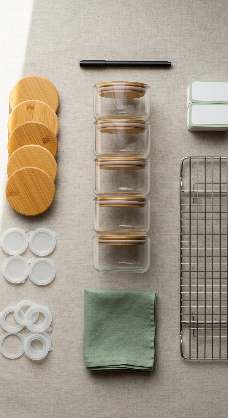 - Glass containers with airtight silicone seals (recommended sizes: 3 x 700 ml, 2 x 1,200 ml)