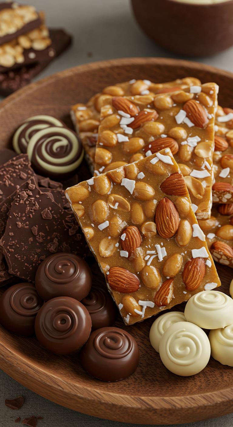 - Add chopped almonds and coconut to the classic peanut brittle mixture before cooling.