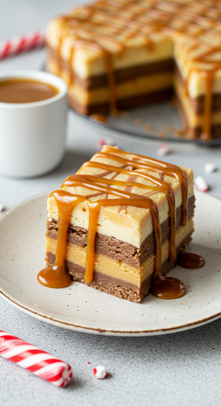 - Drizzle caramel sauce and top with remaining fudge. Swirl to create a pattern and chill.