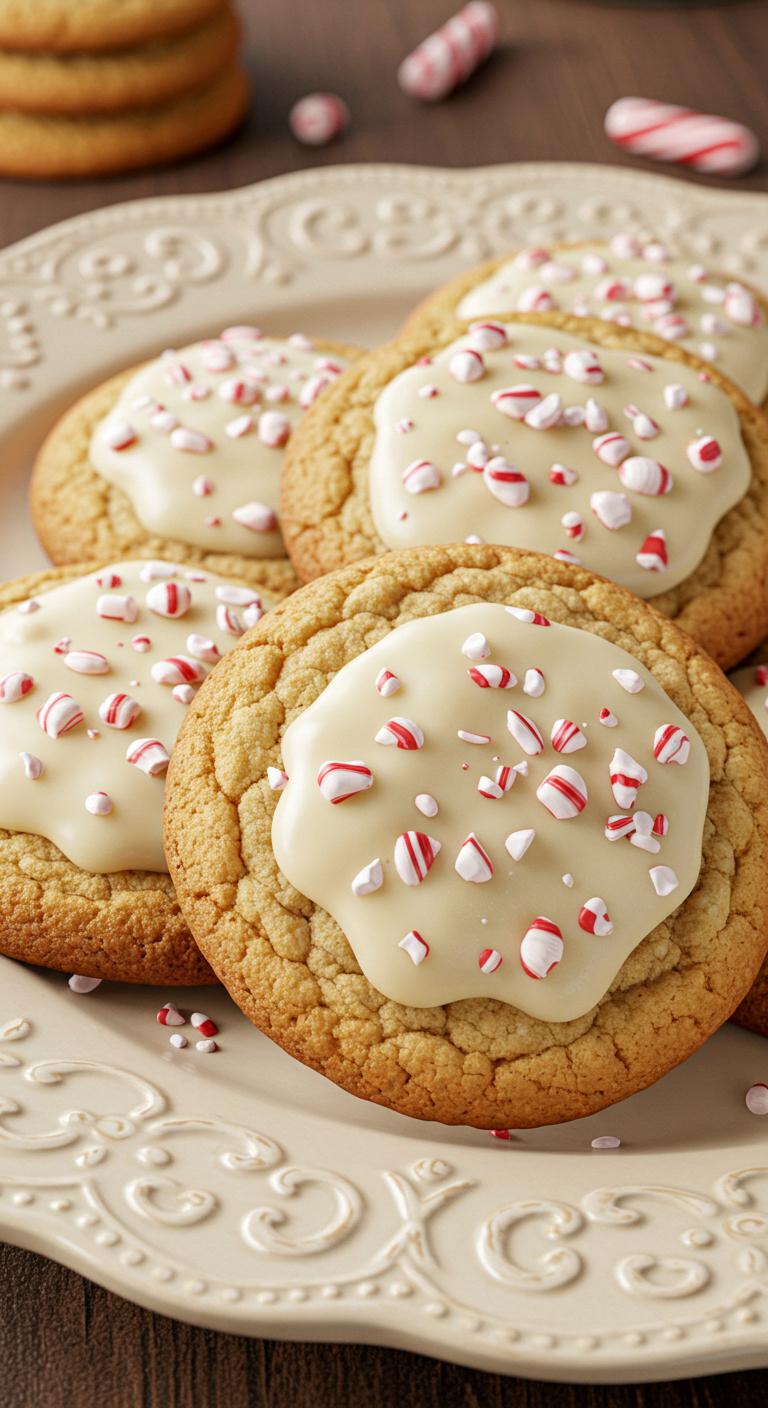 - Let it cool, then melt white chocolate, spread it on top, and sprinkle with crushed candy canes.