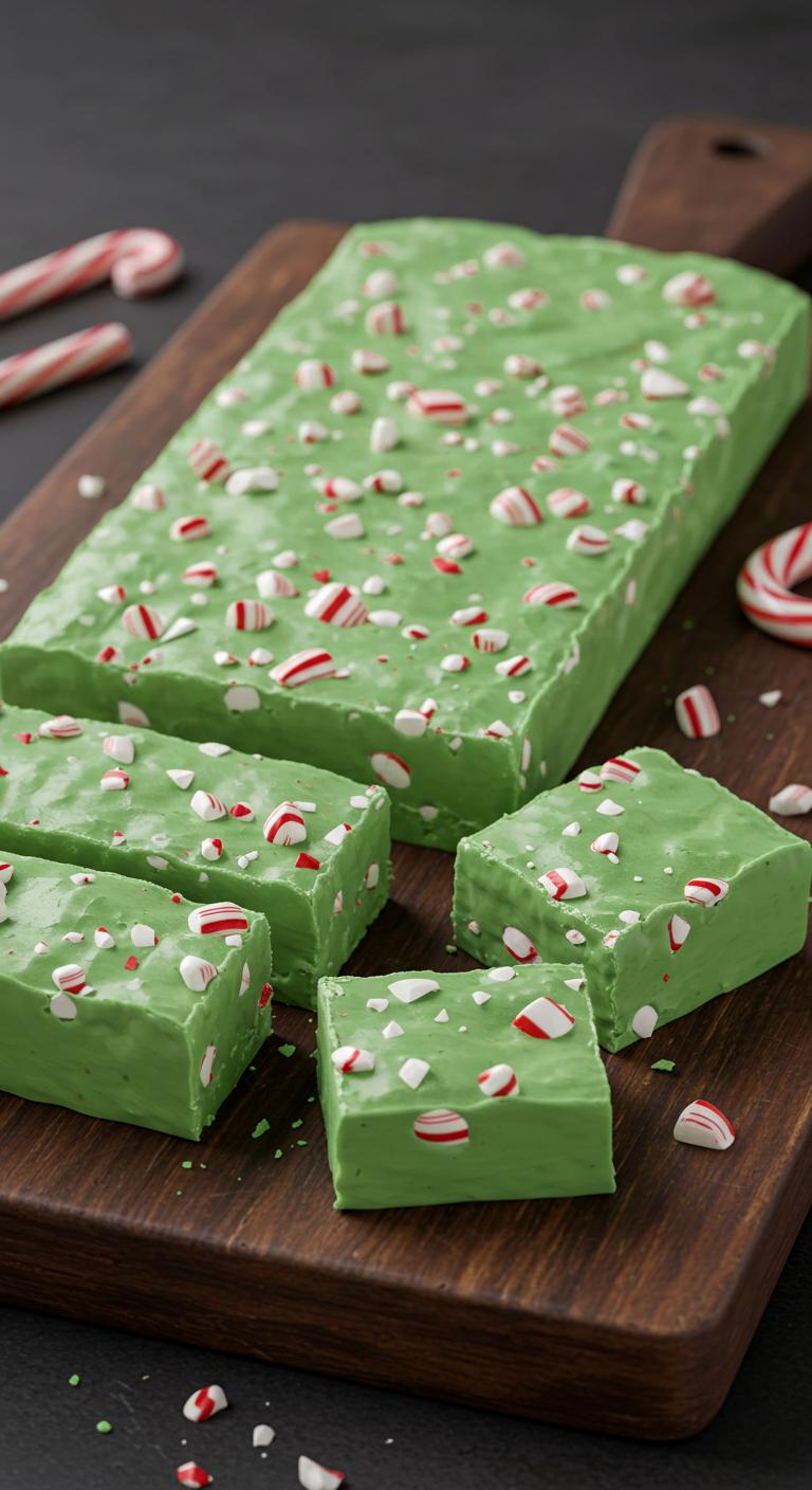 - Press into a greased pan, top with crushed peppermint, and cool.